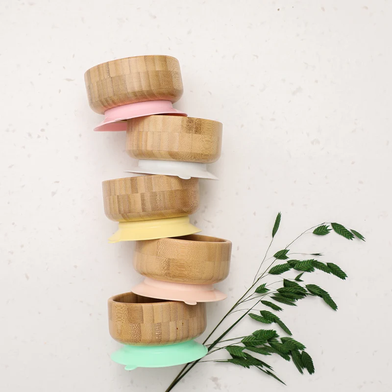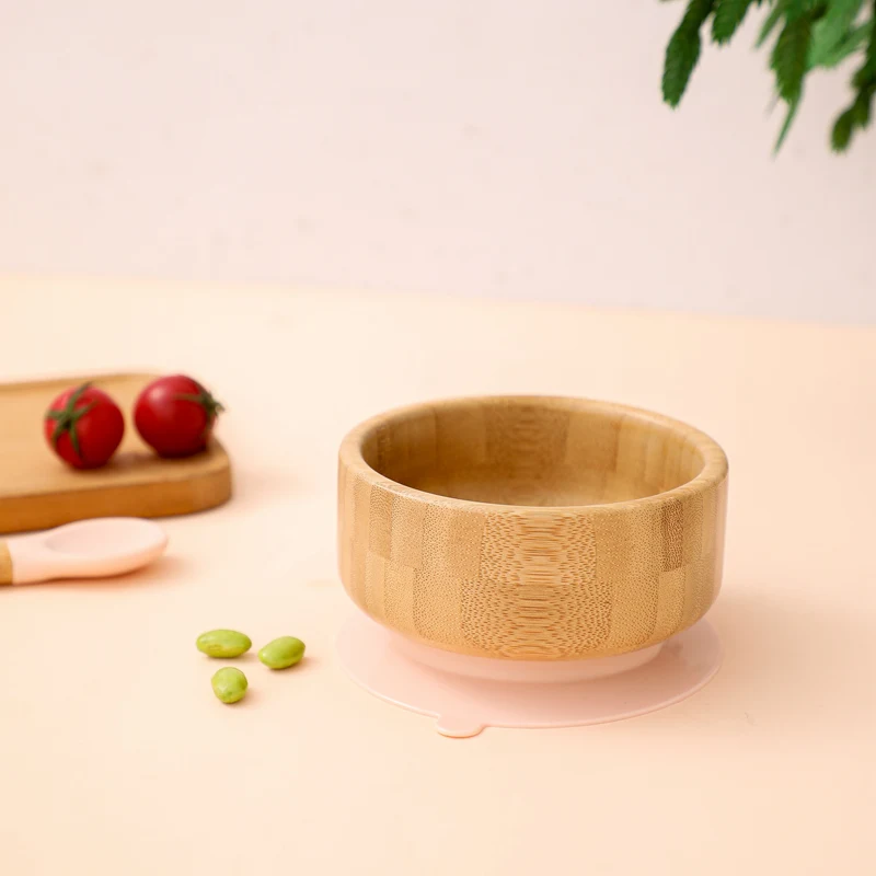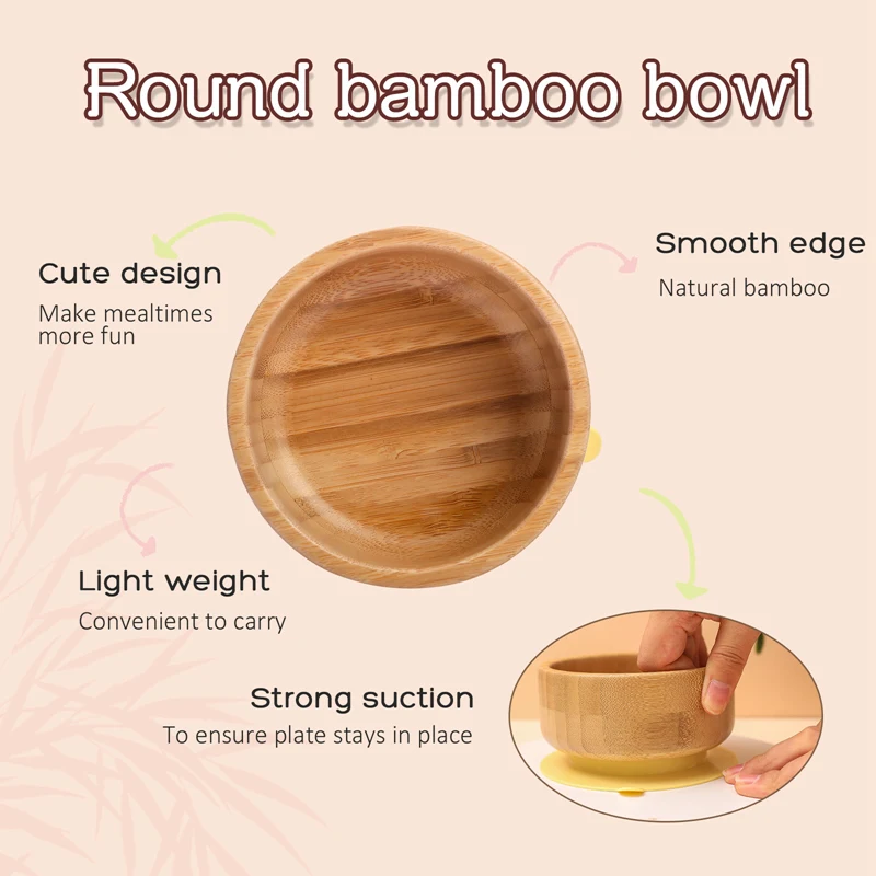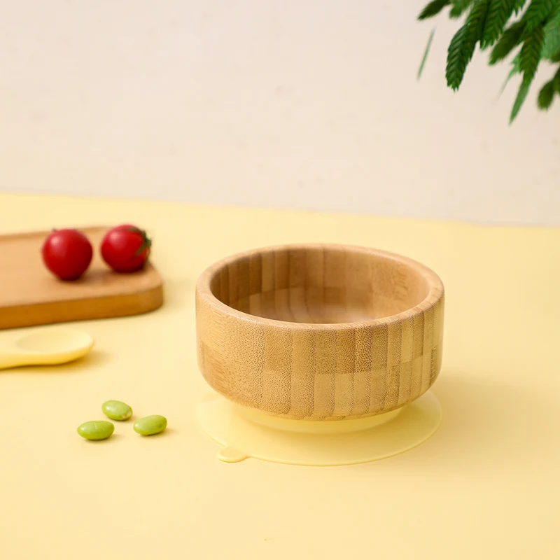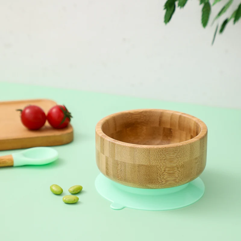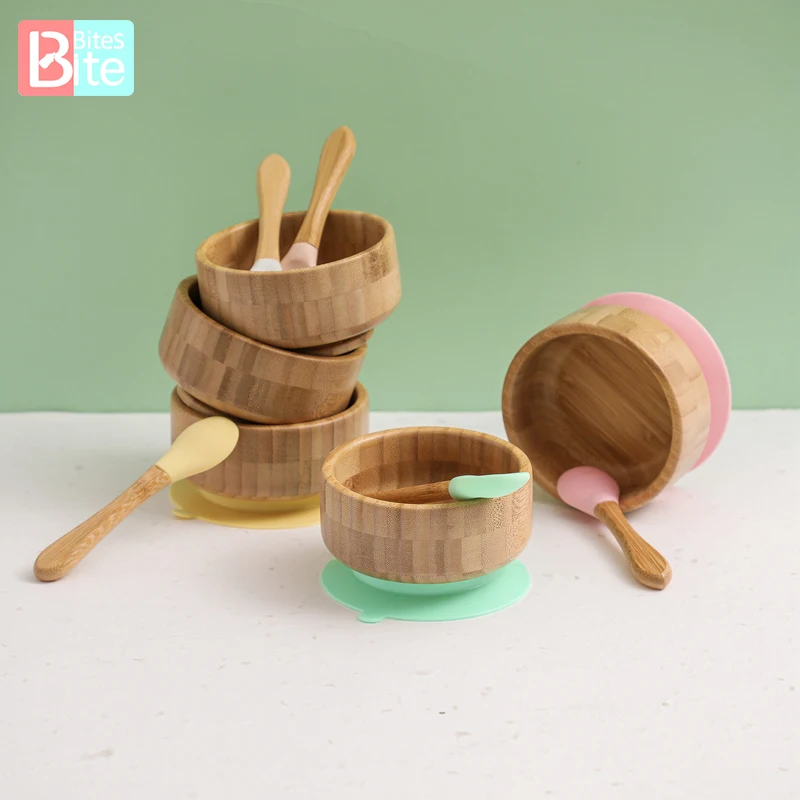 2PCS/SET Baby Feeding Tableware Bamboo Bowl Silicone Spoon Waterproof Suction Set Non-Slip Crockery Baby Dishes Kitchenware
