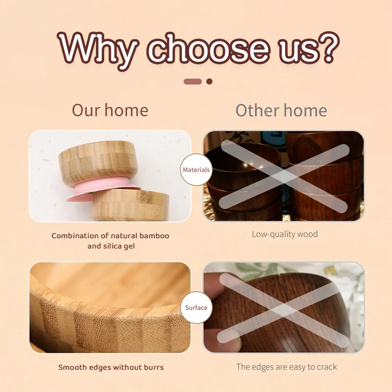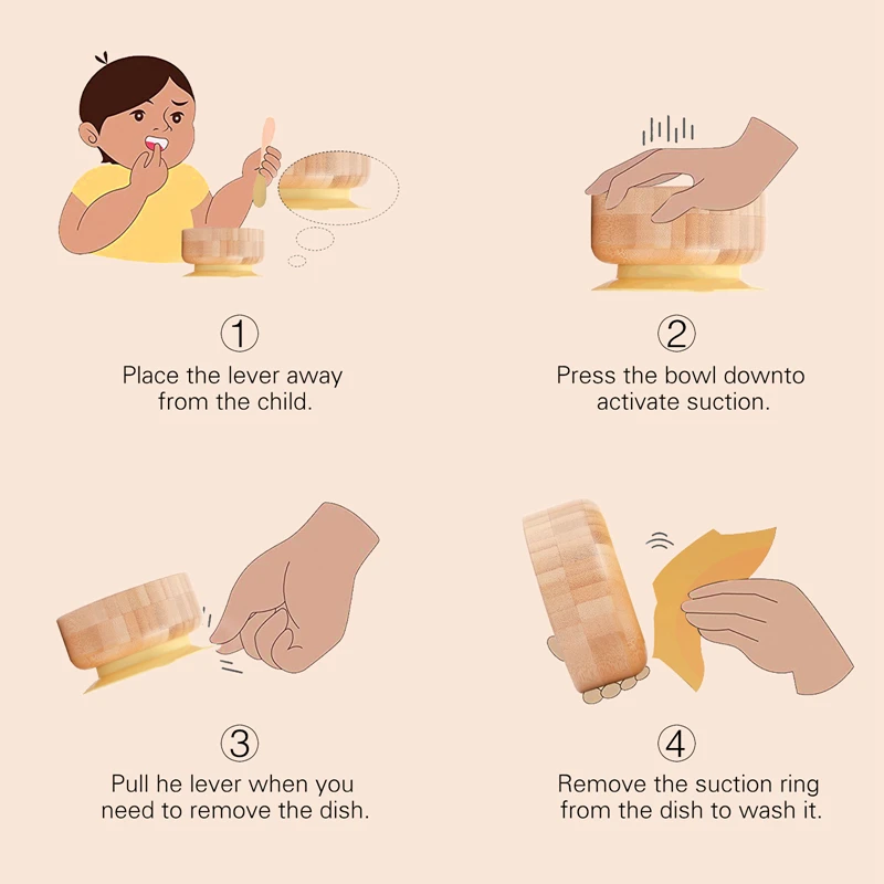 Cleaning method: Bamboo and wood tableware can only be washed by hand, warm water and laundry detergent, cut into the dishwasher and disinfection cabinet to avoid prolonged soaking. After cleaning, put it in a cool place for 2 minutes to air dry. Remember to remove the suction cup when cleaning.
