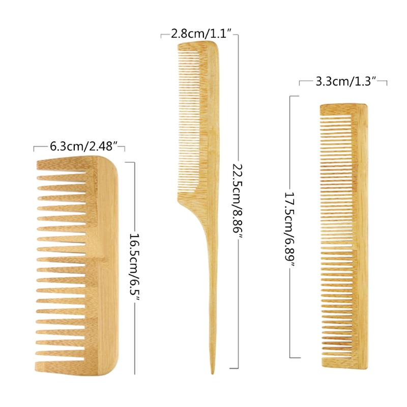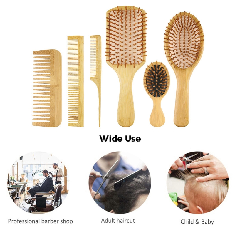 Bamboo Hair Combs Massage Scalp Detangling Hairbrush for Women Men Reduce Frizz Straight Curly Wavy Dry Wet Hair