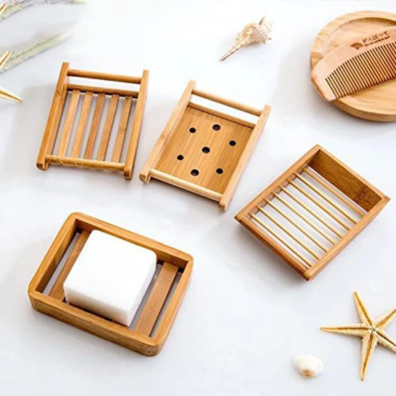 Bamboo Soap Rack Wooden Natural Handmade Plate Eco Friendly Sponge Tray Soap Dish Holder